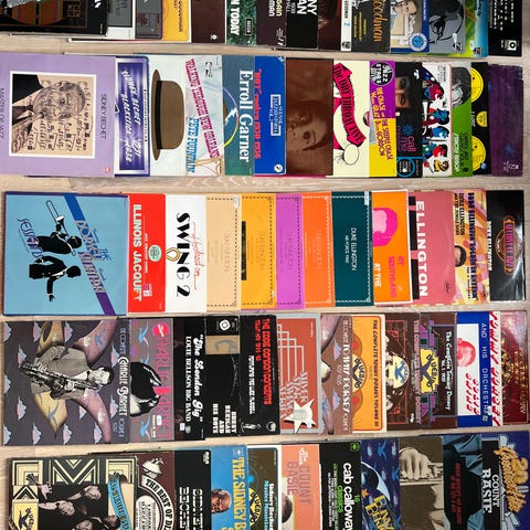 50 LP-skivor med jazz och swing, i bra skick.