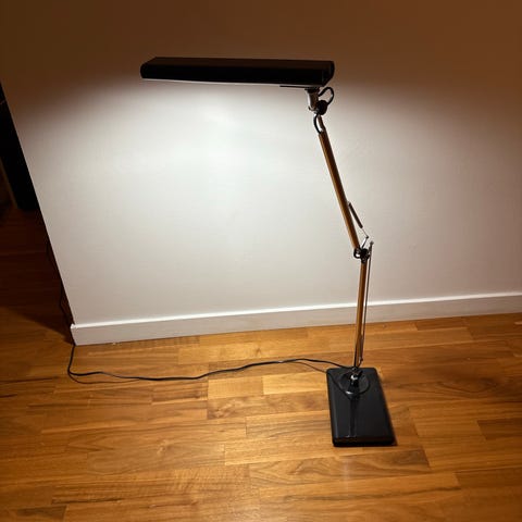 Säljer skrivbordslampa. Observera att sladden saknar strömbrytare. Brukar enkelt kunna ordnas på lampaffär.