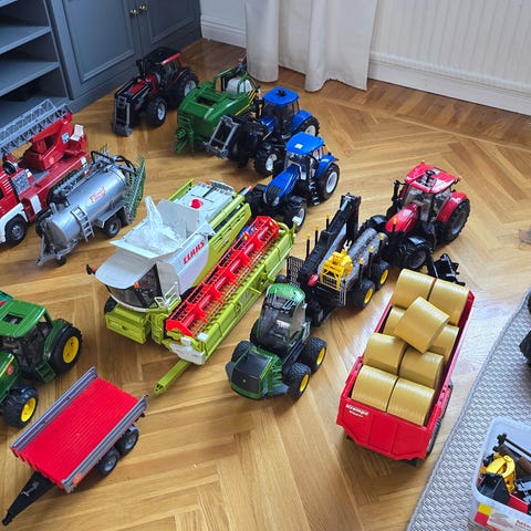 Bruder leksakstraktor Fendt 1050 är en riktigt stor traktor i verkligheten och därmed även som leksak. Den är hela 46 cm lång och dess tippvagn 37 cm lång. Skala 1:16.