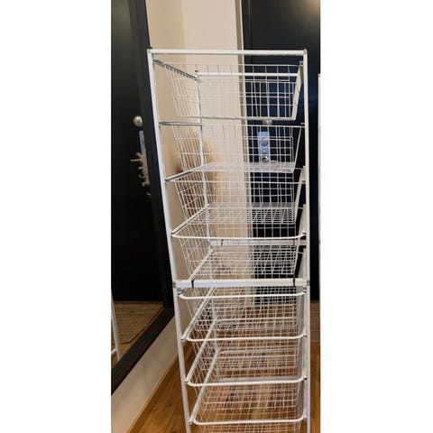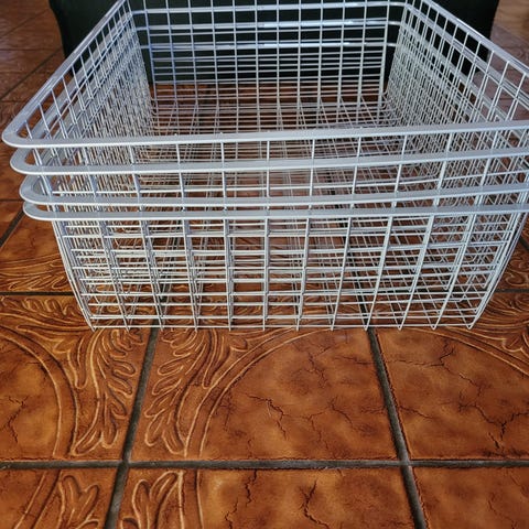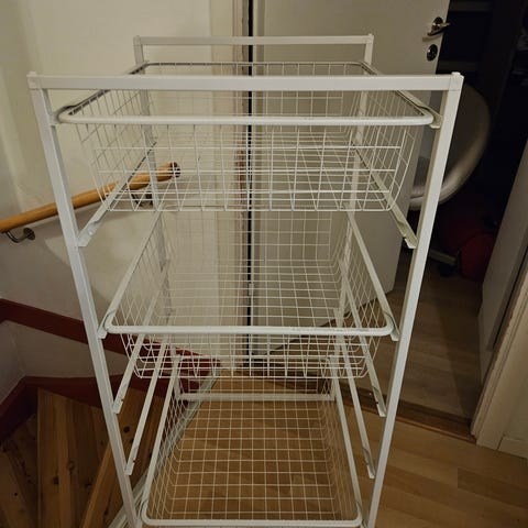 Tre stycken uppsättningar trådbackar med stativ säljes. Modellen är Biltemas vita 45 cm breda (se länk nedan). Säljes för 200 kr styck.