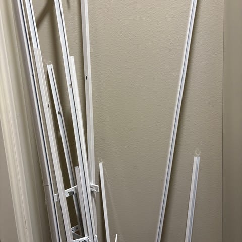 Gardinstångsset i vit färg bestående av flera delar. Material och storlek är inte specificerade. Produkten är avsedd för användning med gardiner.