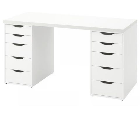IKEA Skrivbord i trä med vit metallram