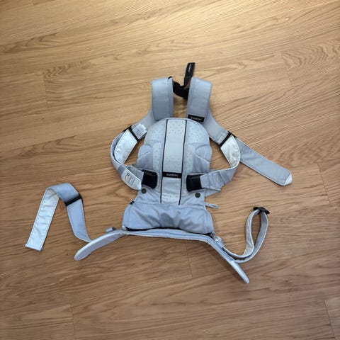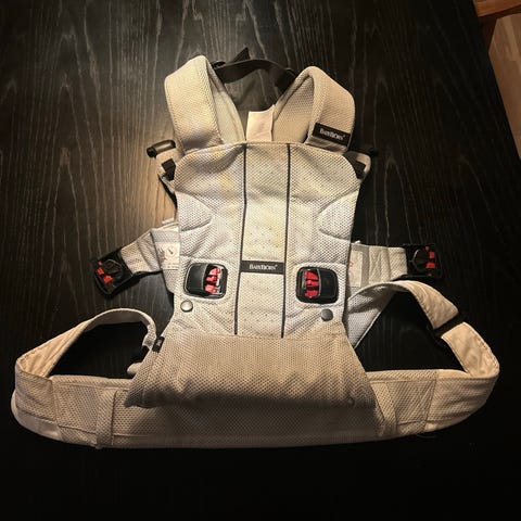 Bärsele klassisk Babybjörn One, i svart nätmaterial med justerbara remmar och spännen