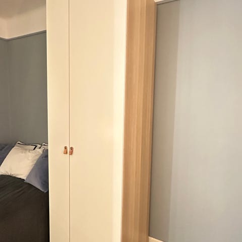 Passar bra i barnens rum. Ett av fästena till klädstången är trasigt, men kan enkelt ersättas till låg kostnad.