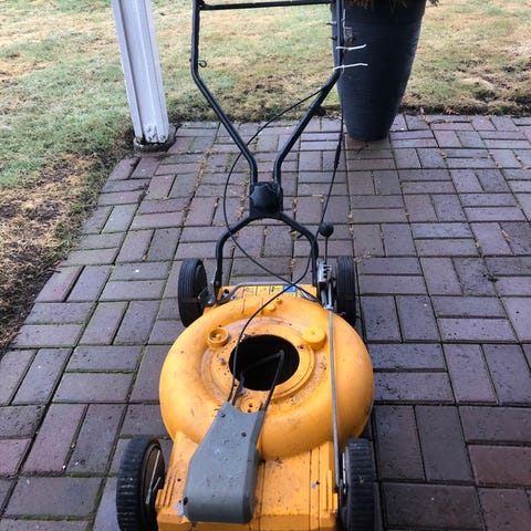 Oanvända reservdelar till gräsklippare.