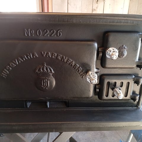 Husqvarna S2 vedspis i gjutjärn. Spisen har två kokplattor och ugnsutrymme. Den är avsedd för vedeldning och har en robust konstruktion. Passar för uppvärmning och matlagning i miljöer där vedeldning används.