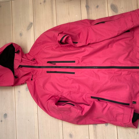 Snygg röd varm skidjacka från Everest, med avtagbar huva och kardborrejustering på ärmslut. Många fickor samt även liftkortsficka på vänster arm.