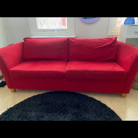 Ny bäddsoffa, endast ihopsatt & sen direkt invirad m bubbelplast som skydd.