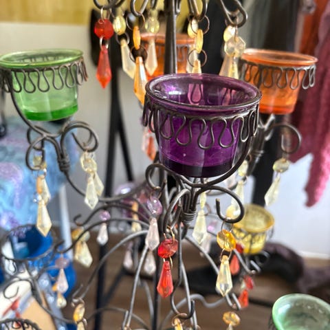 Antik ljus hållare 7. St selar men fina dekoration och glas kupar och kedjor i gamla modeller på olika längt , detta varor är okänd för mej vet inte att på vilken år tillverkades även var kommer från och vet inte heller hur mycket är värde , detta ljus hållarna med tända ljus skapar en romantisk känsla i hemmet på mysiga kvällar , enligt på bilder finns i Västerås .