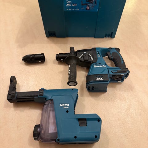 Makita DHR242Z borrhammare med 6.0 18V batteri och laddare .Blå färg. Levereras med extra handtag, batteri och laddare. Lämplig för borrning och slagborrning i olika material.