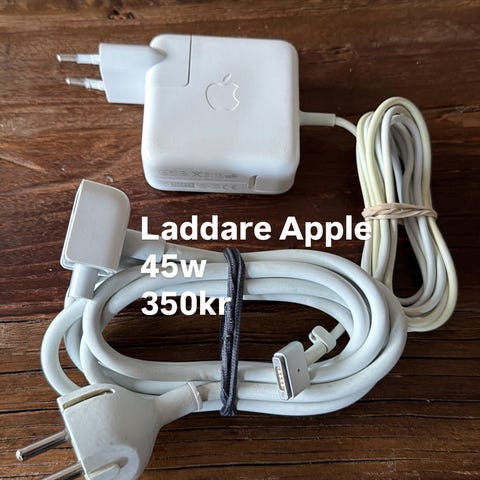 Apple adapter för dator, med anslutningskablar. Produkten är vit och avsedd för användning med kompatibla Apple-enheter.