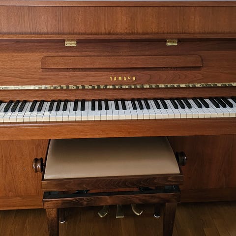Yamaha piano från ca 1978 i brunt trä som är tillverkat i Japan. Några ytterst små skavanker som syns på sista 2 bilderna annars i utmärkt skick.