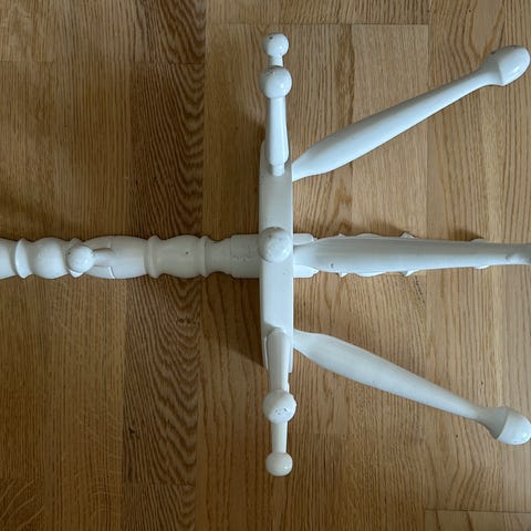 Två st krokar och en trasig. Nya (Habo) kan köpas och fästas på stången.