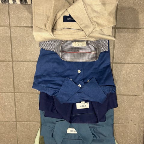 Säljer två snygga skjortor från Eton, båda med mönster och i storlek 43. Perfekta för vardag eller festligare tillfällen, mjuka och bekväma. Skjortorna är i fint skick utan fläckar eller skador.