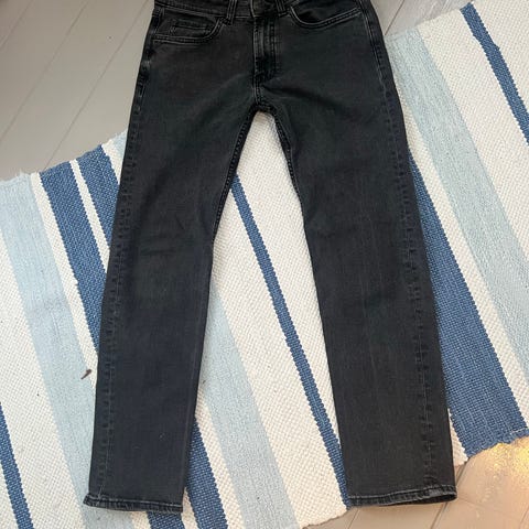 Säljer ett par svarta jeans från Dressmann, storlek 32/32. Klassisk passform och bekväm bomull, perfekta för vardag eller jobb. Jeansens skick är fint utan fläckar eller hål.