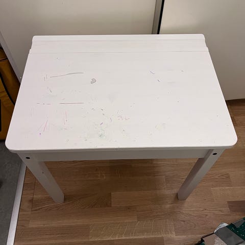 IKEA barnmöbel skrivbord i vitt. Passar för barnrum och kan användas som arbetsyta för studier och pyssel.