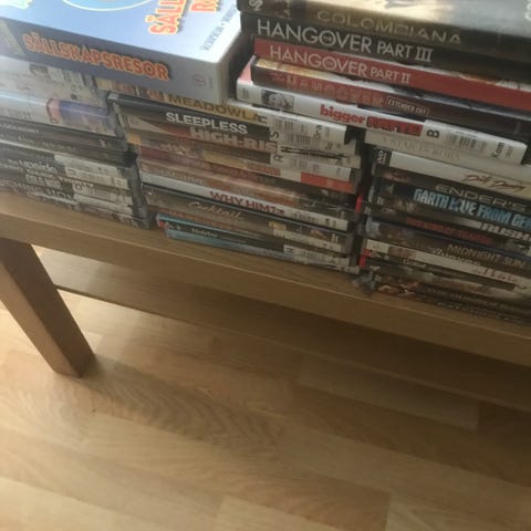 Mängder med filmer, mestadels dvd men lite blu-ray finns också.