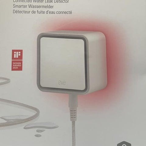 Grohe Sense Water Sensor är en vattensensor i vit färg. Produkten används för att upptäcka vattenläckage och kan kopplas till en mobilapp för övervakning.
