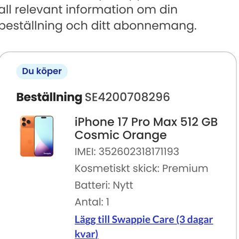 Min helt nya iPhone 16 Pro Max är till salu, den är oanvänd och har 100% batteri hälsa och boxen finns kvar. Den är i färgen naturlig titan.