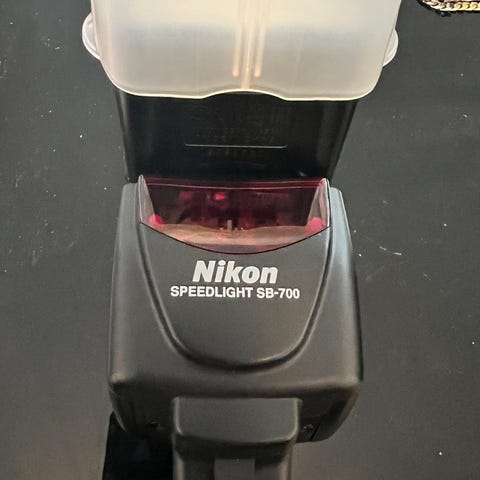 Olympus kamera blixt med fäste för kamera. Används för att ge extra ljus vid fotografering.
