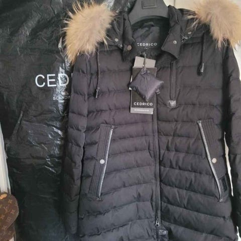 Cedrico Vinterjacka i storlek S för dam. Jackan är svart och tillverkad i polyester. Den är designad för att ge värme under kalla förhållanden och har en huva med pälsdetalj.