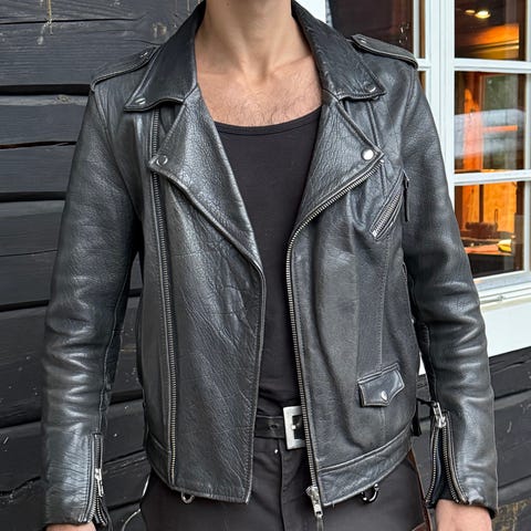 Jackan är tillverkad i läder och