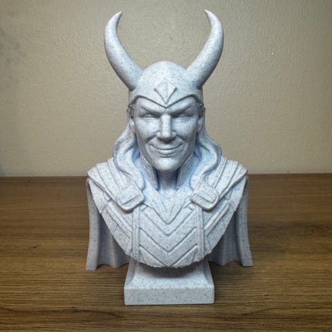 Detaljerad byst av den nordiska guden Thor, utformad med inspiration från klassiska skildringar i nordisk mytologi. Tillverkad med 3D-skrivare i PLA med marmoreffekt som ger en exklusiv känsla.