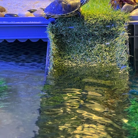 Trevlig sköldpadda som kan både springa och simma. Maten följer med