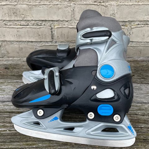 Kosa Ishockeyskridskor för barn i storlek 31-33. Skridskorna är svart och grå till färgen och är avsedda för ishockey.