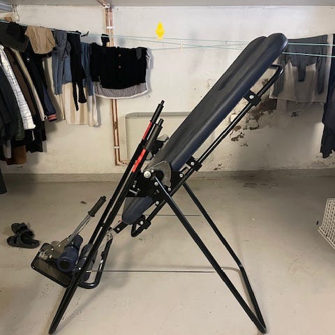 Rejäl och stabil inversionsbänk (ryggsträckbänk) för avlastning av rygg och leder.