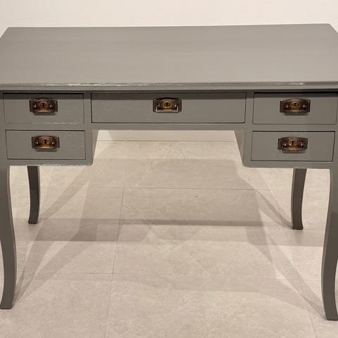 Antikt skrivbord som är målad med vit antikfärg. Skrivbordet är av massivt trä. Mycket fint.