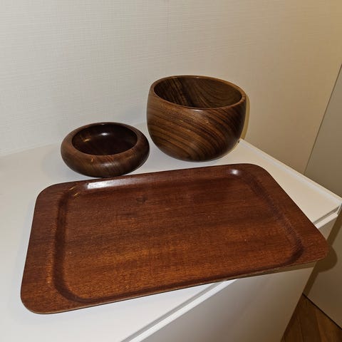 Skålar och brickor i teak, retro!