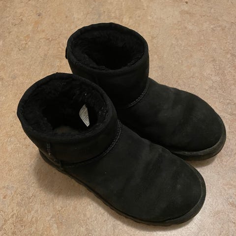 De är så pass lite använda att det inte ens märks på pälsen på insidan. Sulorna är inte alls slitna dock behöver man putsa upp skorna lite, gärna med någon spray/kräm för mocka.