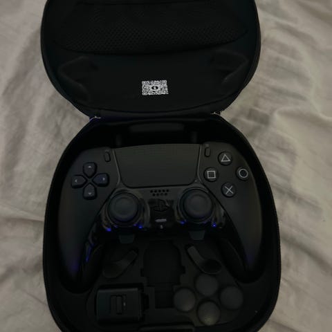 Scuf reflex pro PlayStation 5 DualSense trådlös handkontroll i svart och blå färg. Handkontrollen är designad för PlayStation 5 och har avancerade funktioner för spelkontroll. Är i stort sett inte använd samt alla tillbehör tillkommer.