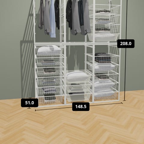 Trådback hyllsystem. Fint skick. Finns på Hammar på Hammarö. Priset är för alla 3. Nypris för alla är 1200 kr.