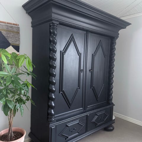 Träskåp med vitrindel och lådor