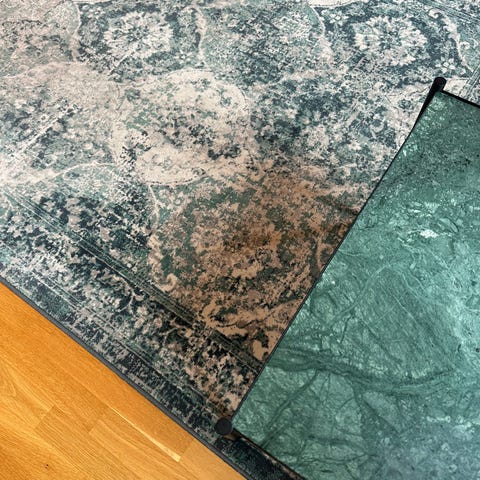 Mönstret och materialet (syntetiska fibrer) gör mattan slitstark, fläcktålig, och enkel att sköta. Nypris: 1495 kr.