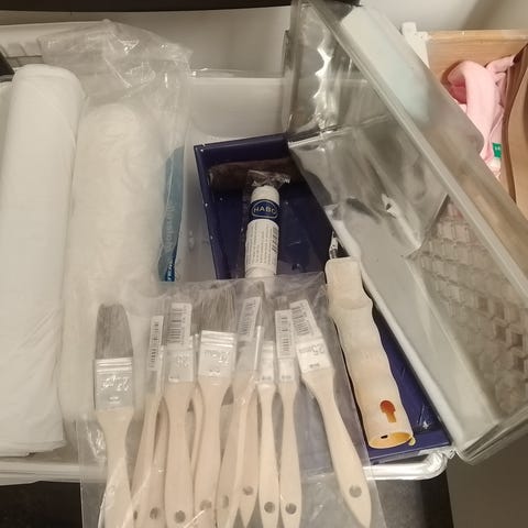Måleriutrustning- Väska med färger och penslar