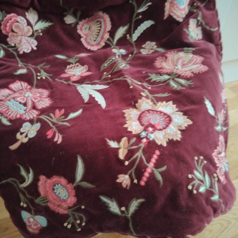 Kuddfodral. Mio. Vinröd. Blommiga.