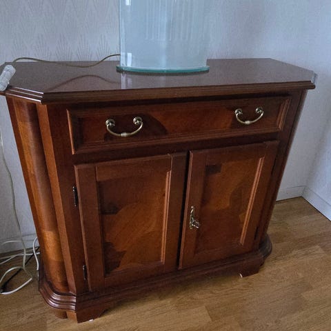 I jätte fint skick stabil att ha tvn på eller något annat inga synliga repor lätt att flytta på