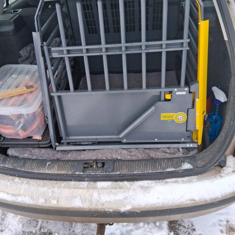 Jumbo Bur är en hundbur tillverkad i svart metall med gallerdesign. Buren är utformad för att ge säker förvaring och transport av hundar. Den har en dörr med låsbar mekanism och en plan bottenyta för komfort och stabilitet.
