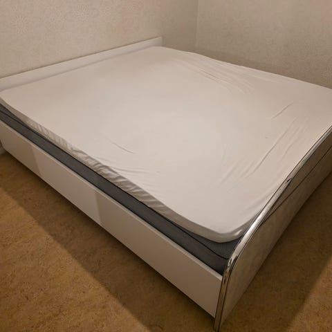 Säng 160 cm brev, IKEA-ram och 2 st 80 cm-madrasser plus bäddmadrass, bortskänkes mot demontering och avhämtning. Finns i centrala Sundbyberg nära stationen. Vitlackad metallram med mässingsknoppar av äldre märke men i gott skick, säljs inte längre. Madrasser och bäddmadrass ca 10 år gamla. Skicka DM. Hämtas senast v 3.