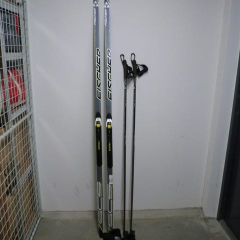 Rossignol längdskidor (skating) och pjäxor samt Leki stavar.