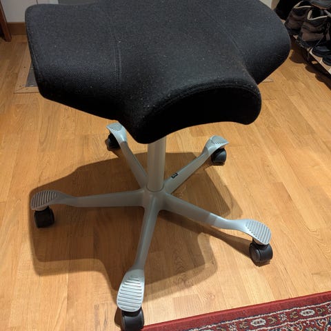 Säljer en Iloa One sadelstol, perfekt för dig som vill sitta aktivt och avlasta rygg och höfter under längre arbetspass.