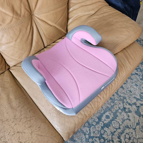 En uppblåsbar bälteskudde med bredd 31 cm och sittdjup 29 cm.