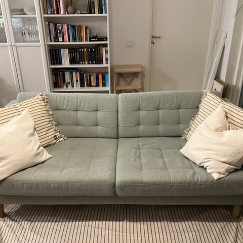 Säljer en IKEA Landskrona 3-sitssoffa i färgen gyllenbrun med metallben. Soffan är i bra skick, väl omhändertagen och har stått i rök- och djurfritt hem.
