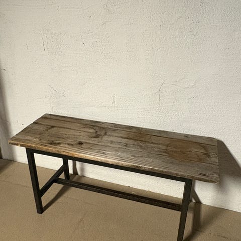 Stabilt och fint bord i massivt trä med rustik känsla och vacker patina. Perfekt som avlastningsbord, sidobord eller hallbord.