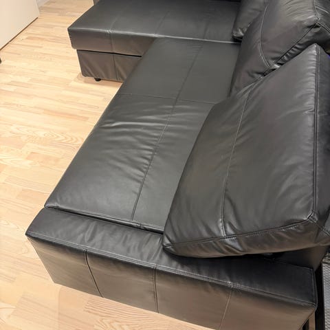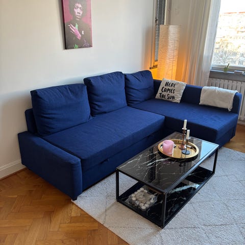 Säljer en IKEA FRIHETEN hörnbäddsoffa i slitstarkt svart Bomstad-överdrag. Praktisk, bekväm och perfekt för både vardagsrum och gästrum.