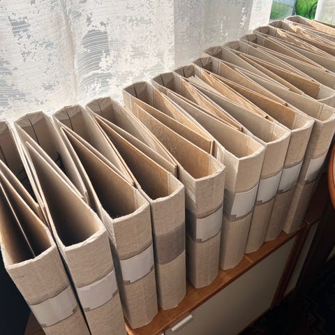Det finns tio stycken och de är alla i mycket fint skick. Pärmarna är eleganta, okrossbara och outslitliga. Bör ses!