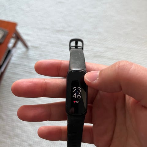 Aktivitetsarmband i svart färg. Armbandet är designat för att mäta och övervaka fysisk aktivitet såsom steg, distans, kaloriförbrukning och sömn. Produkten är kompatibel med Fitbit-appen för detaljerad statistik och målhantering.